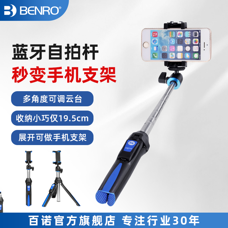百诺MK10自拍杆三脚架无线蓝牙遥控直播支架华为小米旅行拍照通用手持自拍杆手机vlog支架横竖拍可拉伸手柄