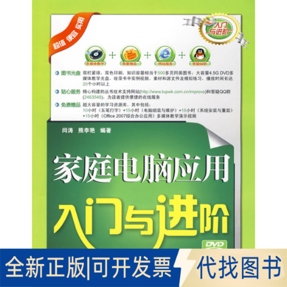 正版全新家庭电脑应用入门与进阶(配光盘)(入门与进阶)9787302211556闫涛,熊李艳 编著清华大学出版社2010-01-01