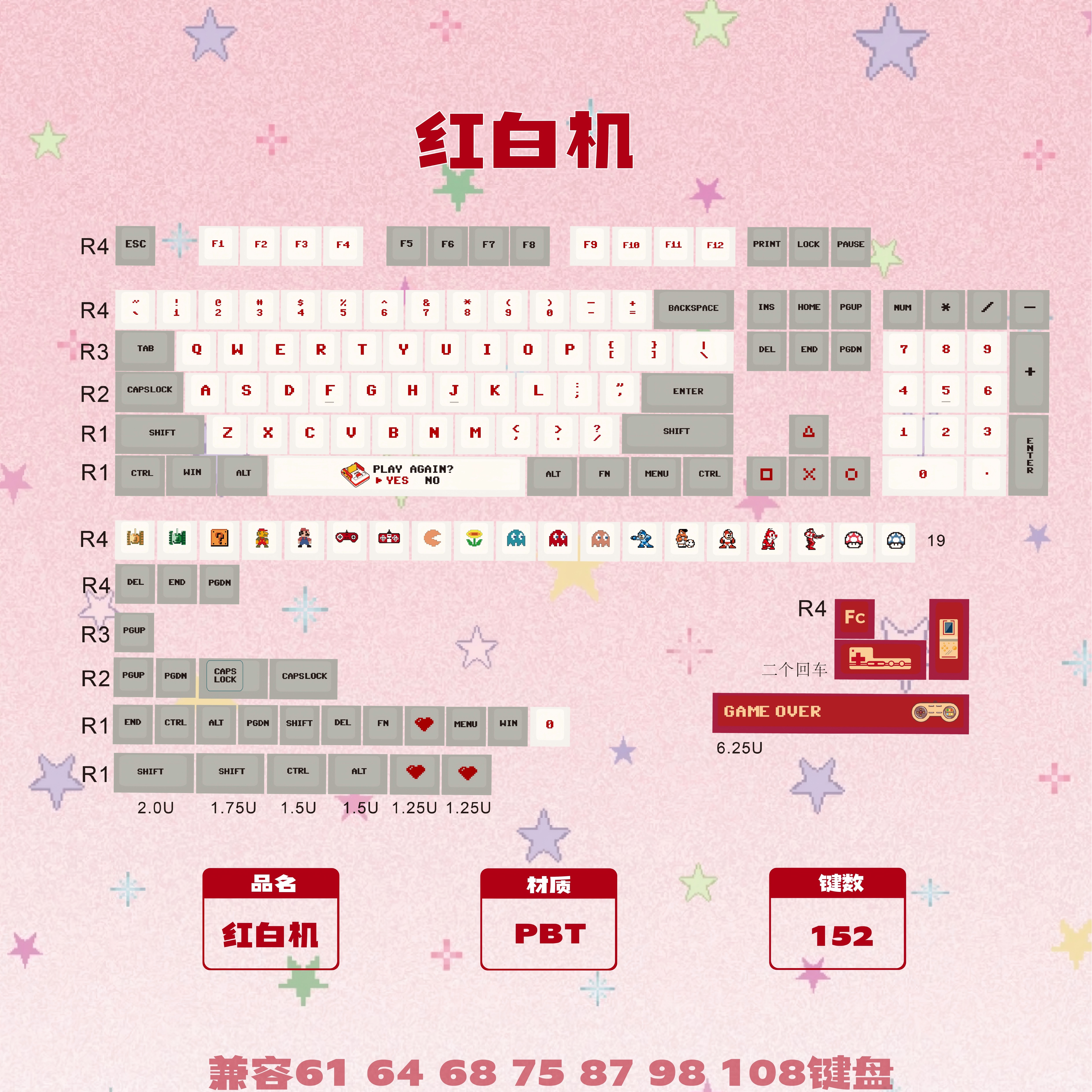 红白机主题机械键盘键帽大全套客制化PBT五面热升华原厂适wooting