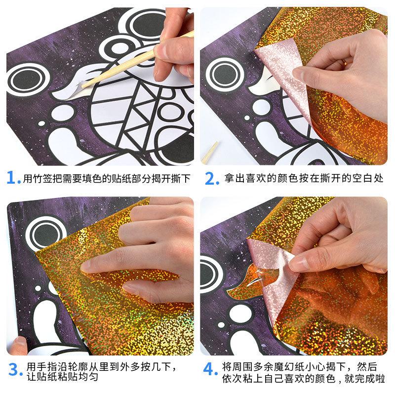 斑彩贴魔幻艺术贴纸 儿童手工DIY制作材料包小玲玩具炫彩转移贴画