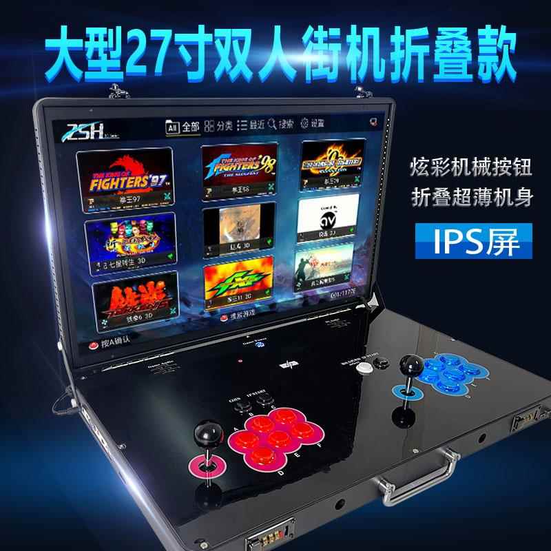 摇杆街机游戏机家用大型24寸双人一体机便携翻盖折叠97拳王格斗机