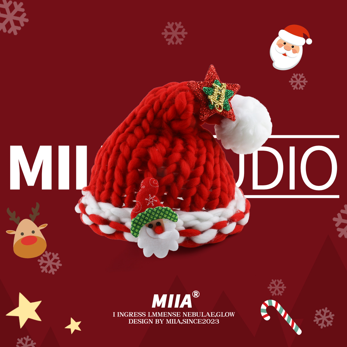 满满氛围感圣诞礼物手工编制粗线红色圣诞帽可爱球球针织帽冷帽女
