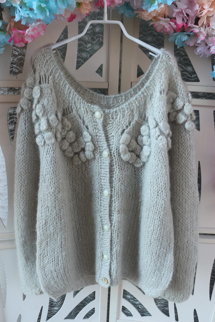 MMC 重工棒针粗线全手工手打勾花立体花朵球球针织开衫外套毛衣厚