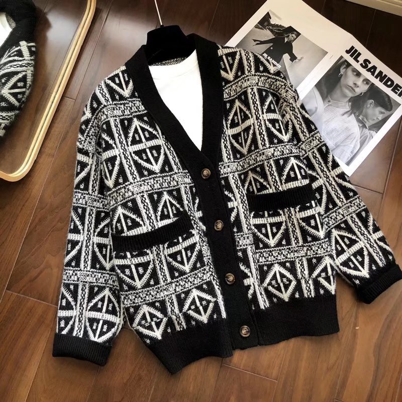 外搭风加厚复古秋冬外套男毛衣开衫洋气提花宽松针织粗线2024慵懒