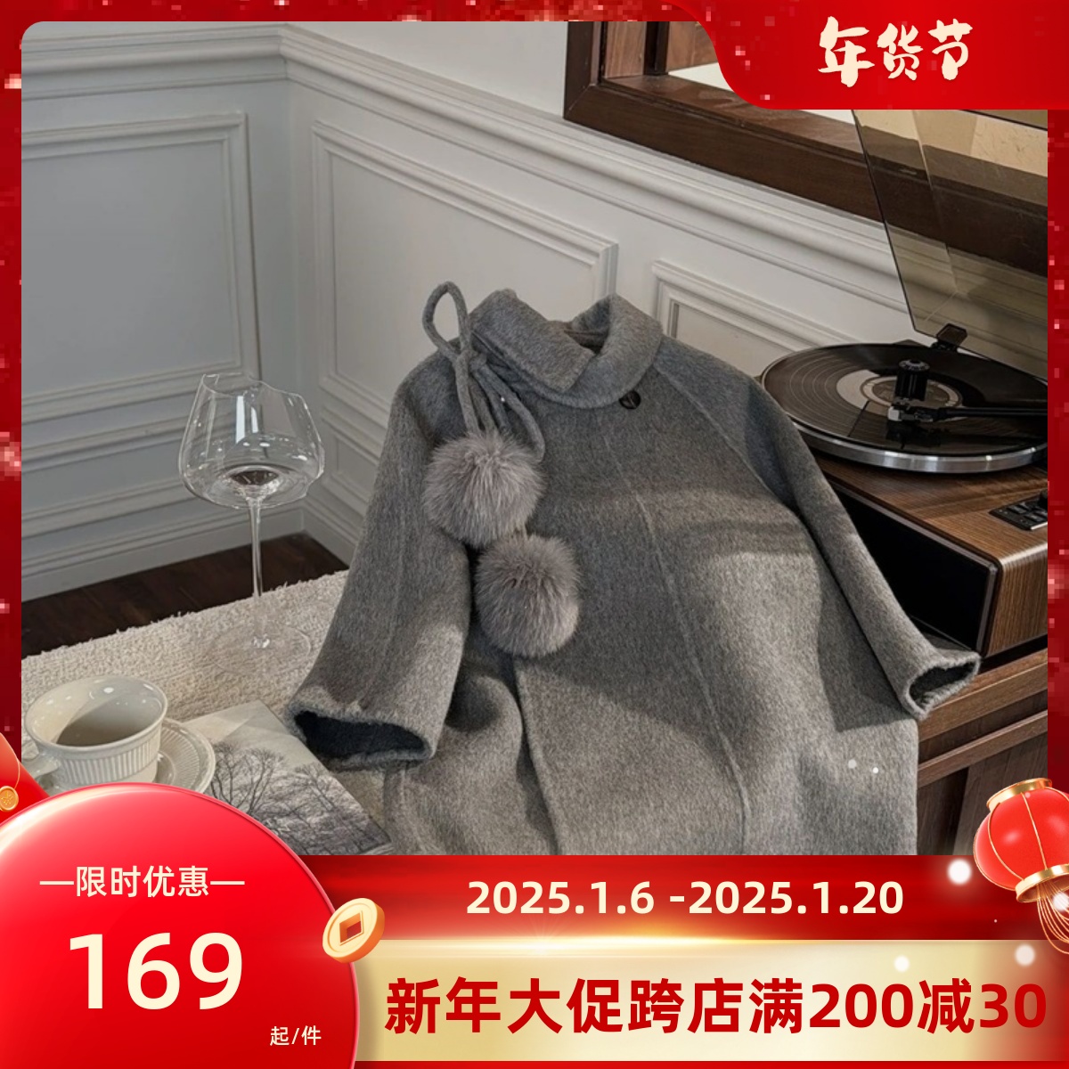金大支球球娃娃领双面呢大衣女2025新款冬装高级感大码毛呢外套