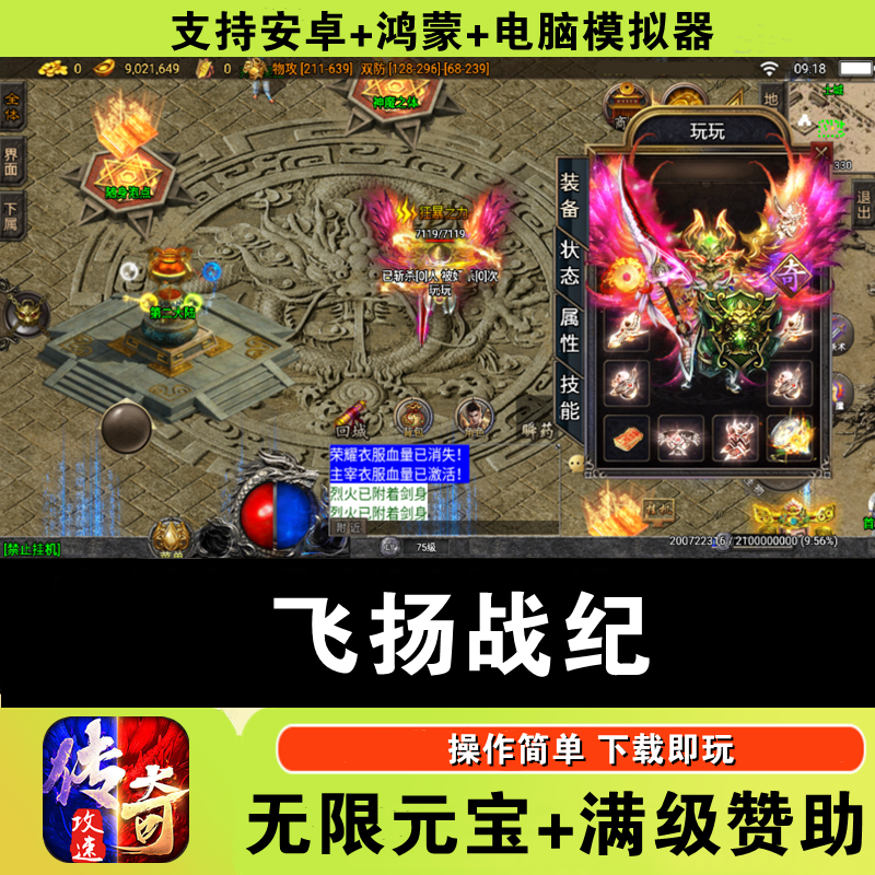 鸿蒙战神攻速传奇手游gm后台元宝满V单职业安卓买断版非单机游戏