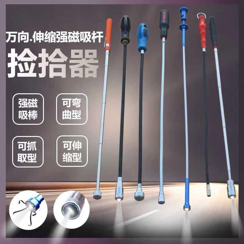 吸铁石捡拾器强力磁铁强磁性吸铁棒带手柄金属螺丝吸力棒吸杆带灯