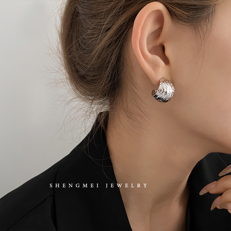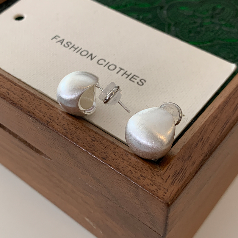 DIGU简约百搭金属磨砂球球耳圈气质独特银白色耳环女日常通勤耳饰