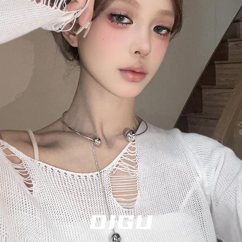 DIGU小众设计感金属圆球球吊坠项链个性独特开口流苏项圈百搭颈链