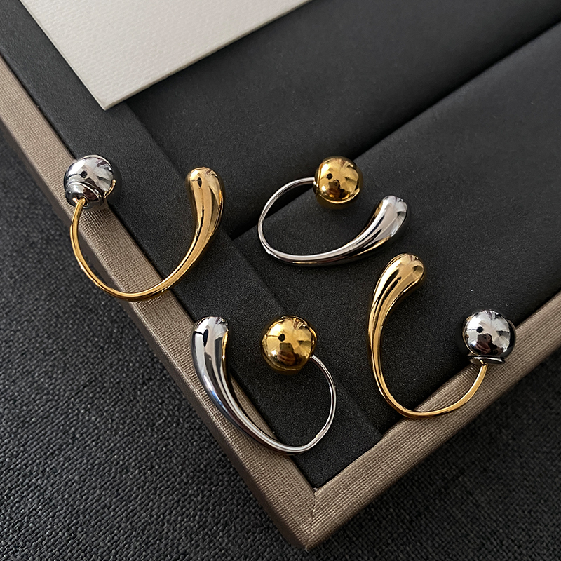 S925银针欧美小众设计金属拉丝椭圆球球撞色耳环冷淡风气质耳钉女