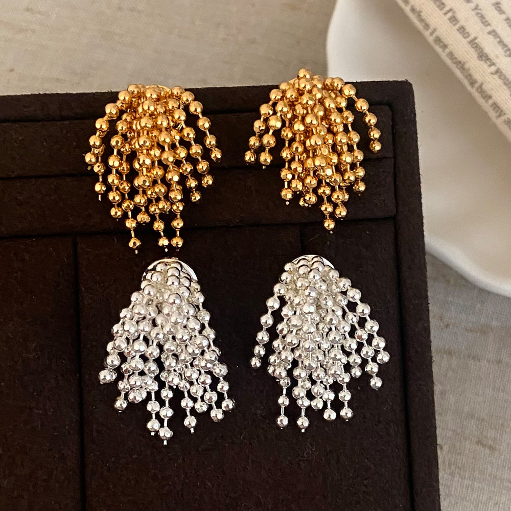 小众高级感金属球球烟花流苏耳钉女夸张个性时尚通勤百搭耳环耳饰