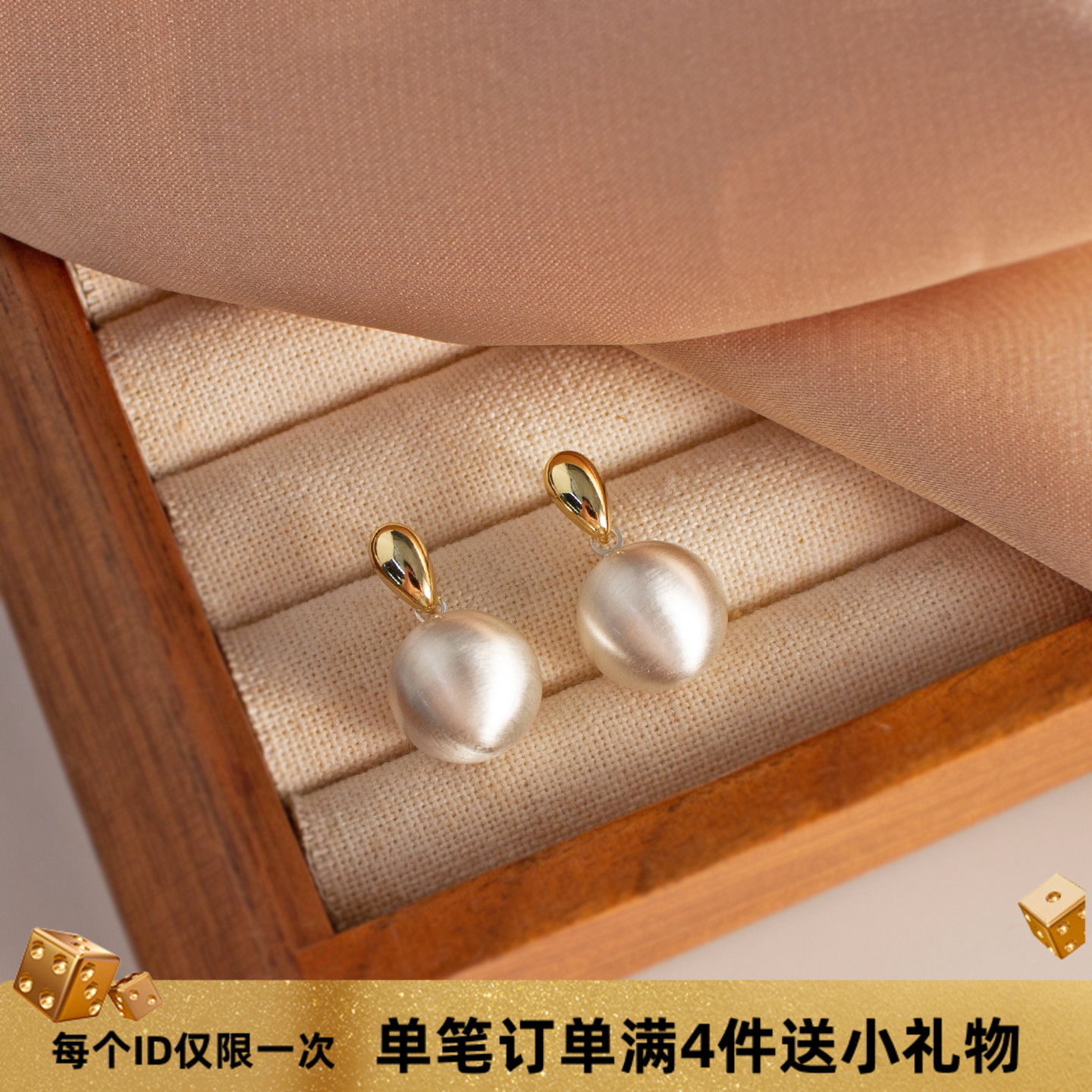 S925银针耳钉金属感拉丝耳珠高级感磨砂浅金女冷淡韩系球球小众