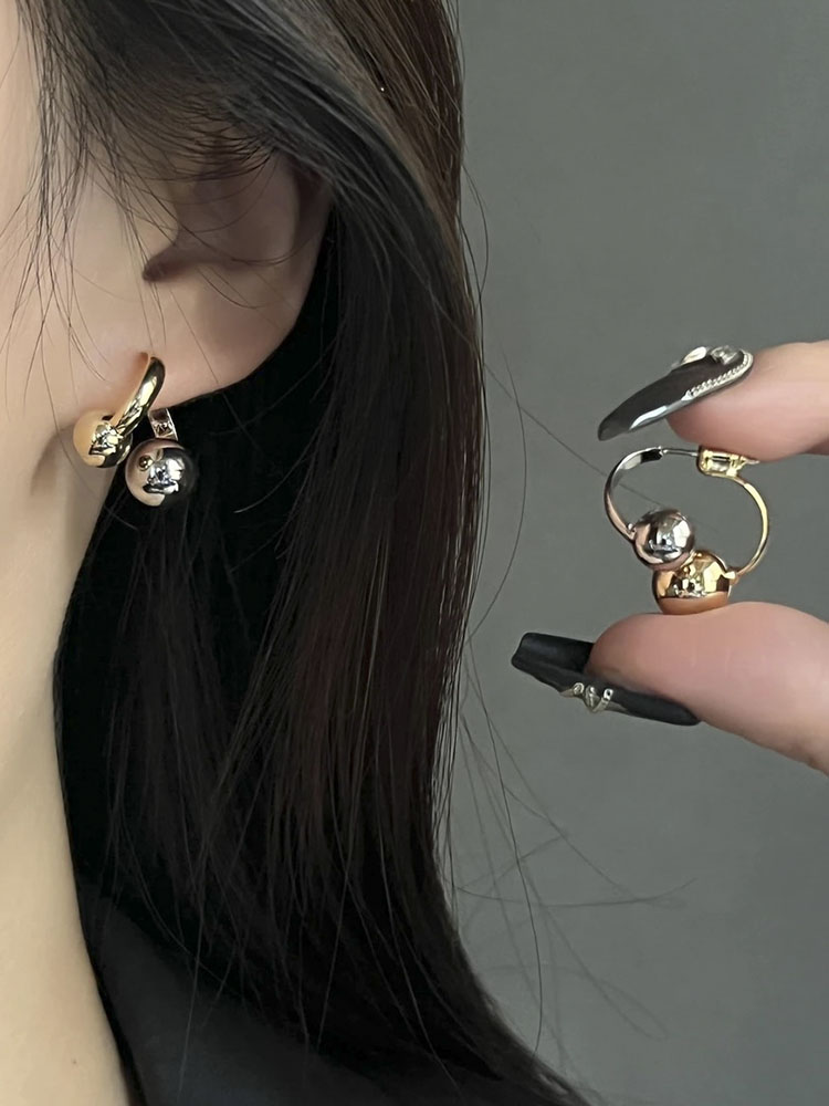 欧美金属风圆球球大耳圈女撞色冷淡风夸张耳饰百搭气质耳坠纯银针