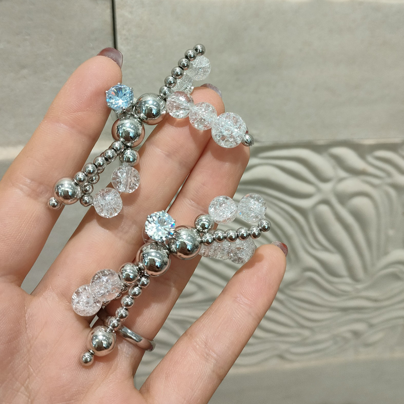 法式琉璃金属球球串珠蝴蝶结银针耳环超仙个性不规则珍珠水晶耳饰