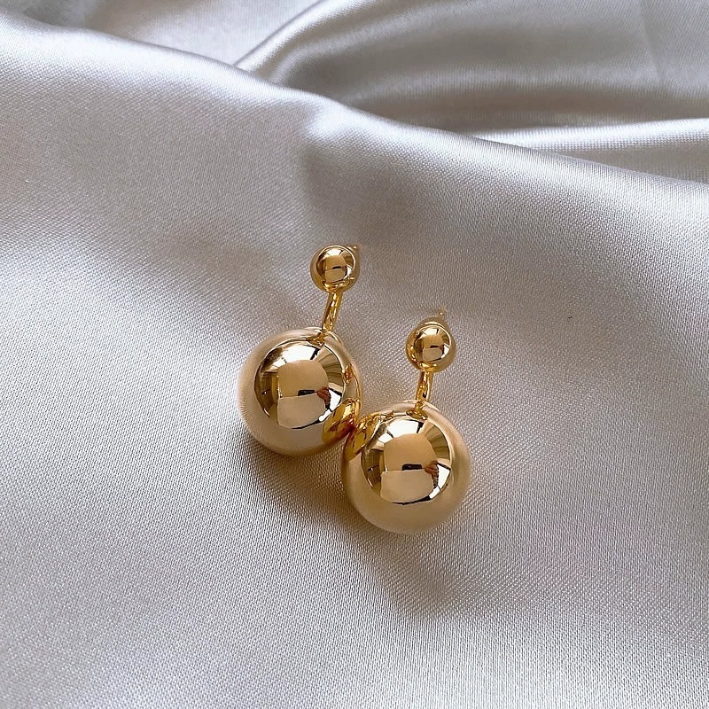 许妍同款耳饰银色亮面立体金属球球耳环日韩新款气质简约时尚耳钉