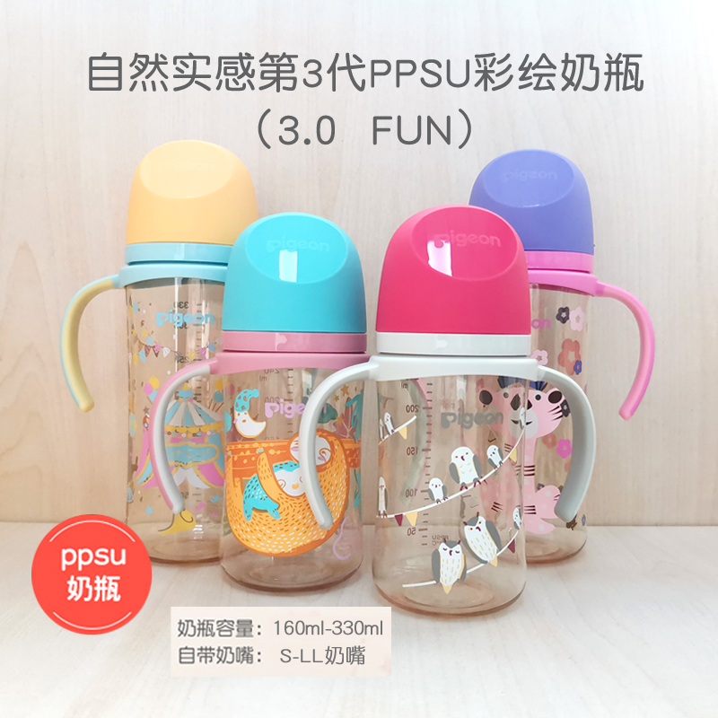 日本贝亲/Pigeon宽口径婴儿彩绘PPSU奶瓶手柄宝宝240ml