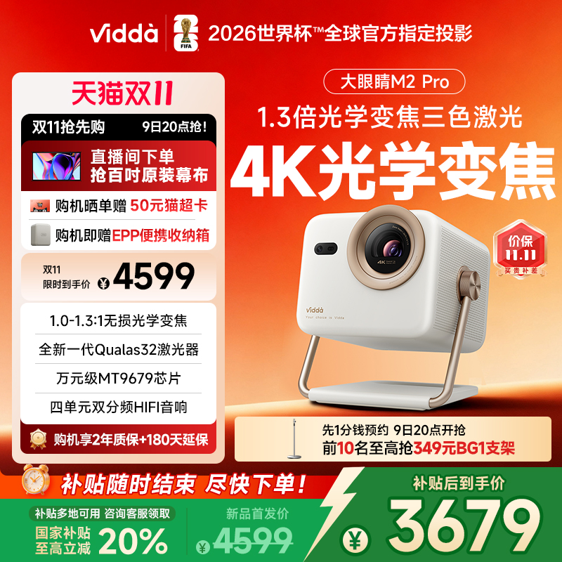 【政府补贴20%】Vidda大眼睛 M2 Pro海信超高清光学变焦三色激光一体投影仪家用游戏电视机家庭影院