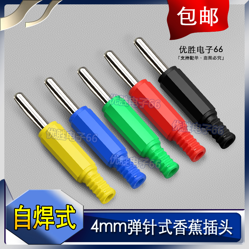 纯铜4mm香蕉插头 大电流高压弹棒电源香蕉测试接头圆柱型免焊接线