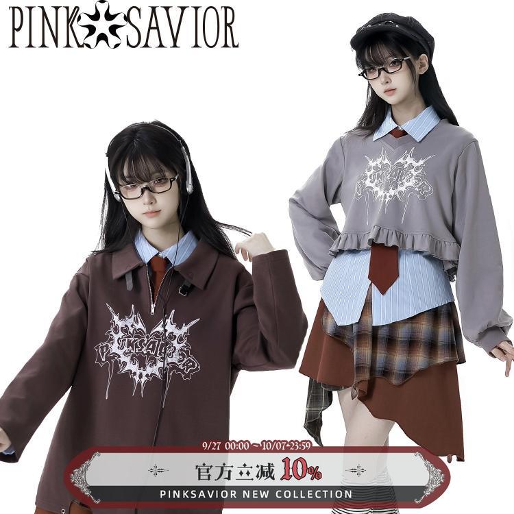 现货即发【银河故障】春秋棕色系衬衫半裙学院原创设计套装女
