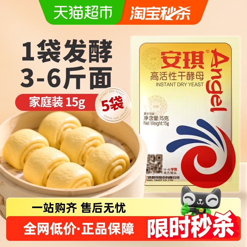 安琪高活性干酵母粉15g*5袋包子馒头糕点即发发酵粉烘焙家用原料