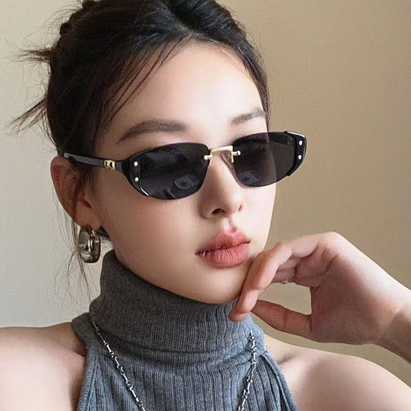 无框墨镜女高级感ins.防紫外线网红优雅气质茶韩版圆脸显瘦太阳镜