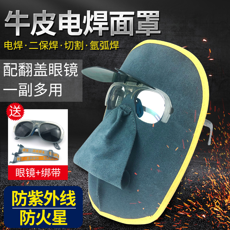 牛皮眼镜焊工面罩牛皮电焊面罩烧焊面罩脸部防护电焊眼镜量大包邮