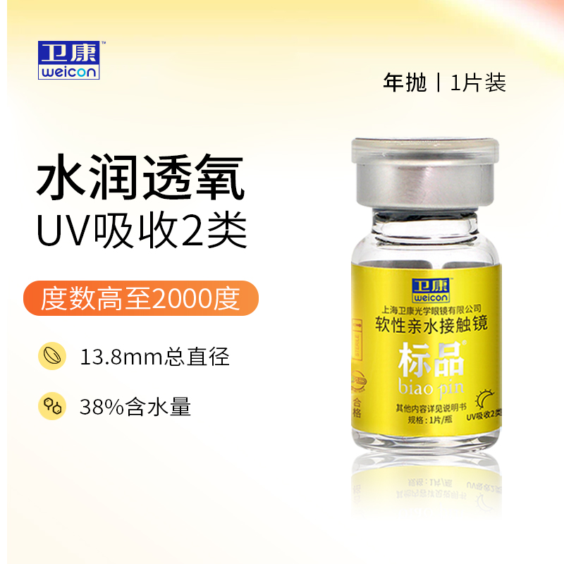 卫康亮明隐形眼镜近视年抛盒装1片高清水润舒适镜片透明片正品SL