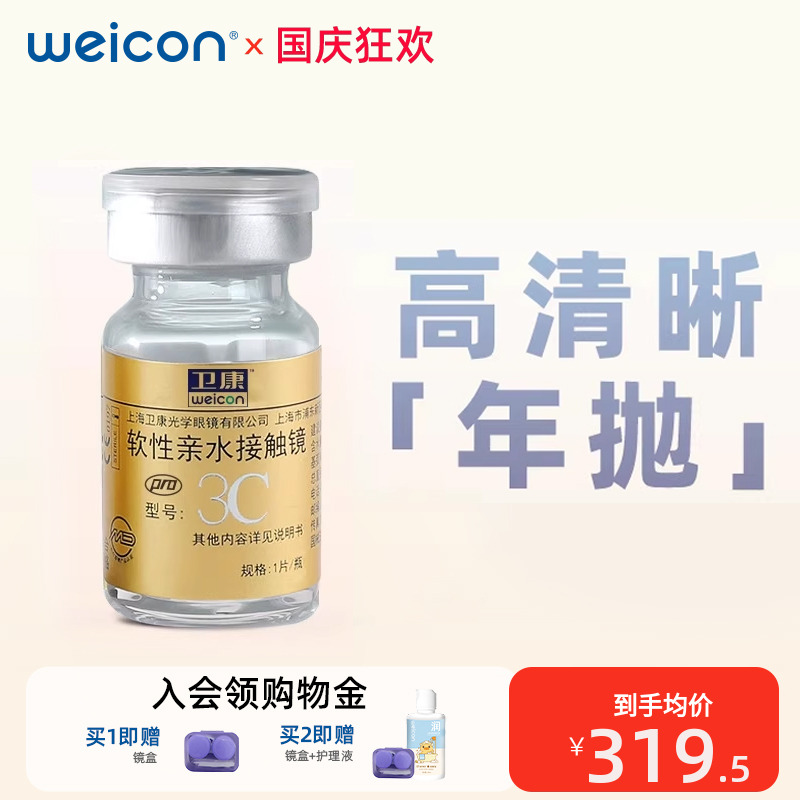 卫康金装3C高度数隐形眼镜年抛1片近视高清水润舒适薄透明旗舰店