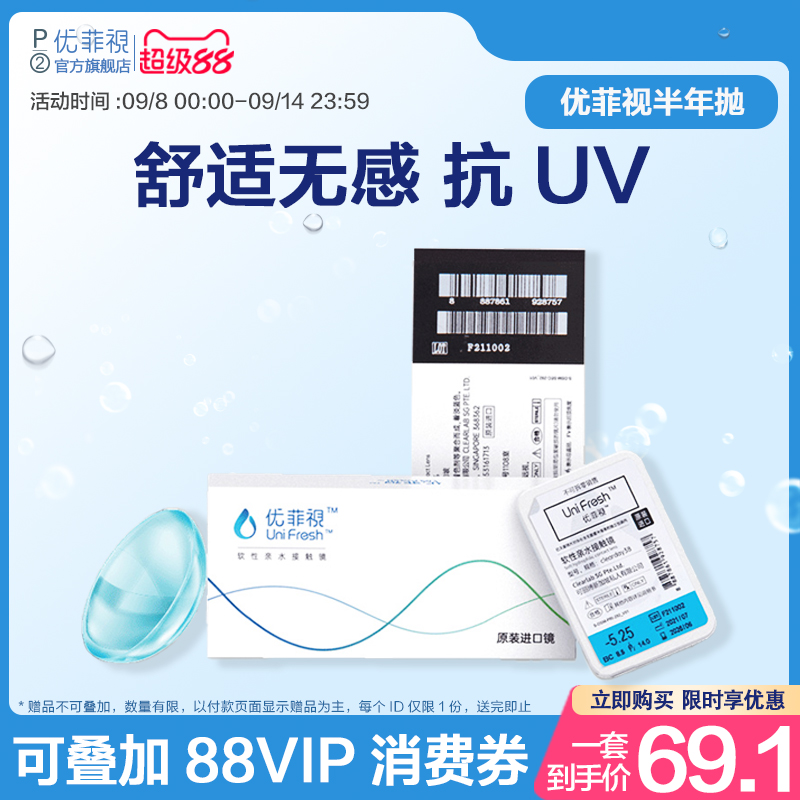 P2优菲视隐形眼镜近视半年抛1片装非离子透明盒非年抛官方旗舰店