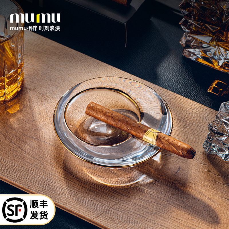奢华烟灰缸描金水晶玻璃烟缸家用客厅欧式办公室雪茄大号防灰飞