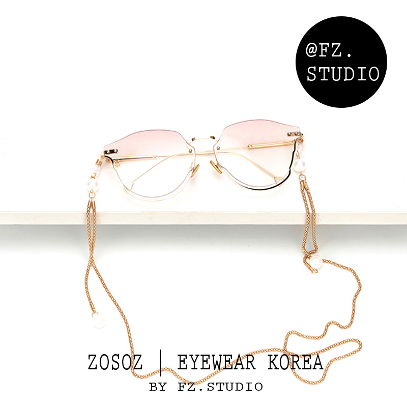 装饰粉色腮红平光镜女 韩版潮无框挂链眼镜框网红 无度数镜架金属