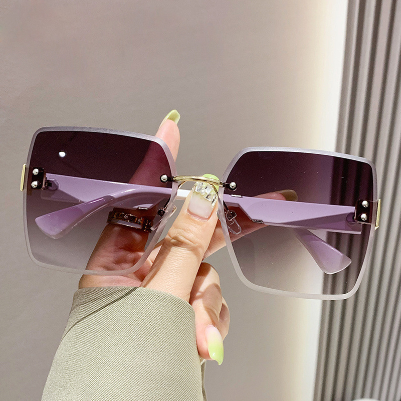2022新款时尚无框切边太阳镜女粉色个性方框显瘦韩版潮街拍墨镜男