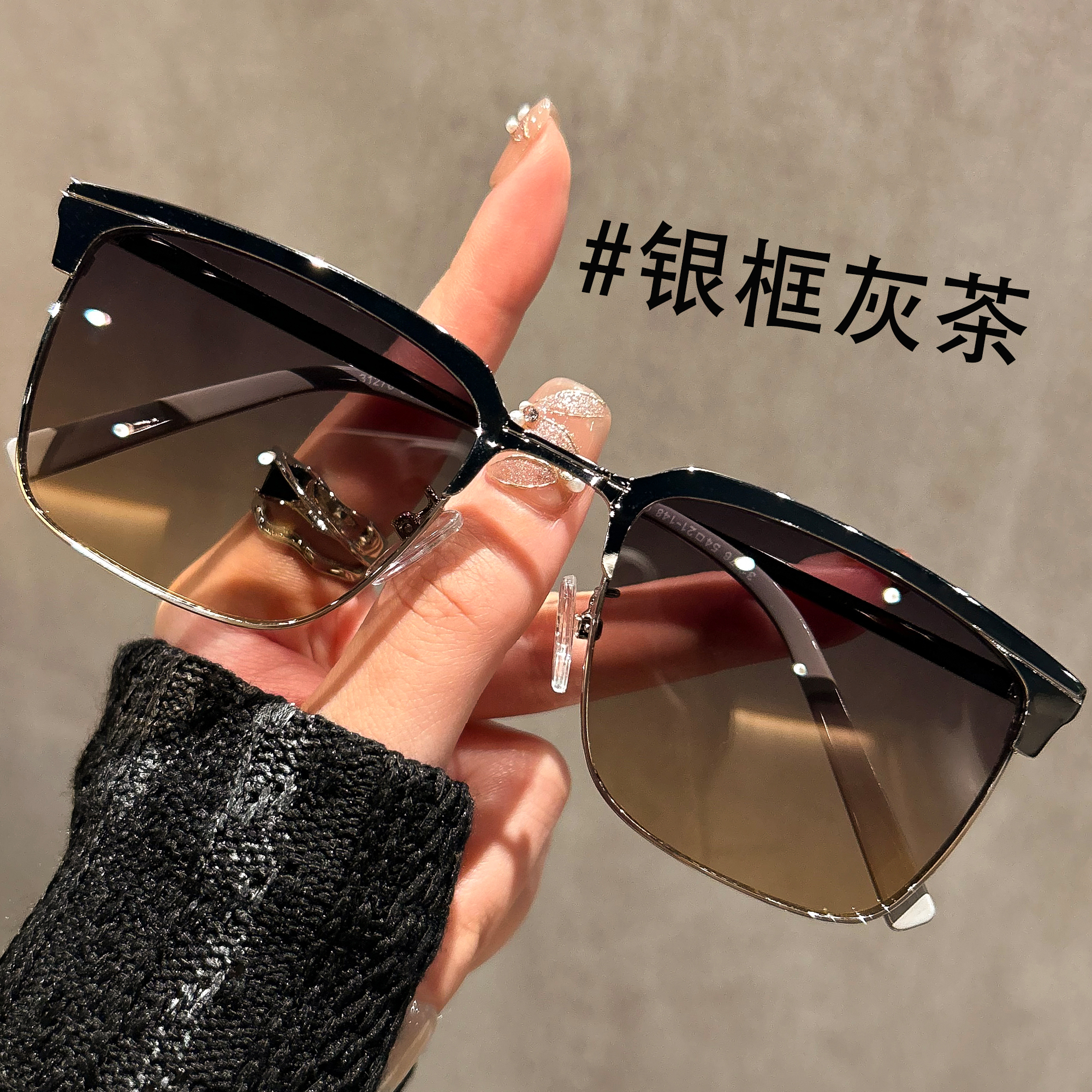灰粉色半框墨镜女款高级感显脸小防紫外线开车专用太阳镜2025新款