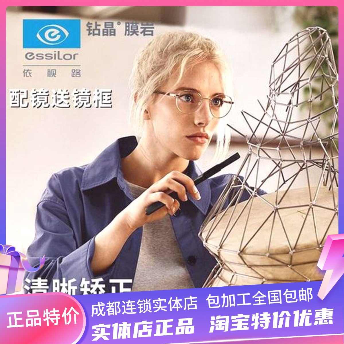 法国依视路镜片近视配眼镜实体店套餐钻晶膜岩A4防蓝光膜致送镜框