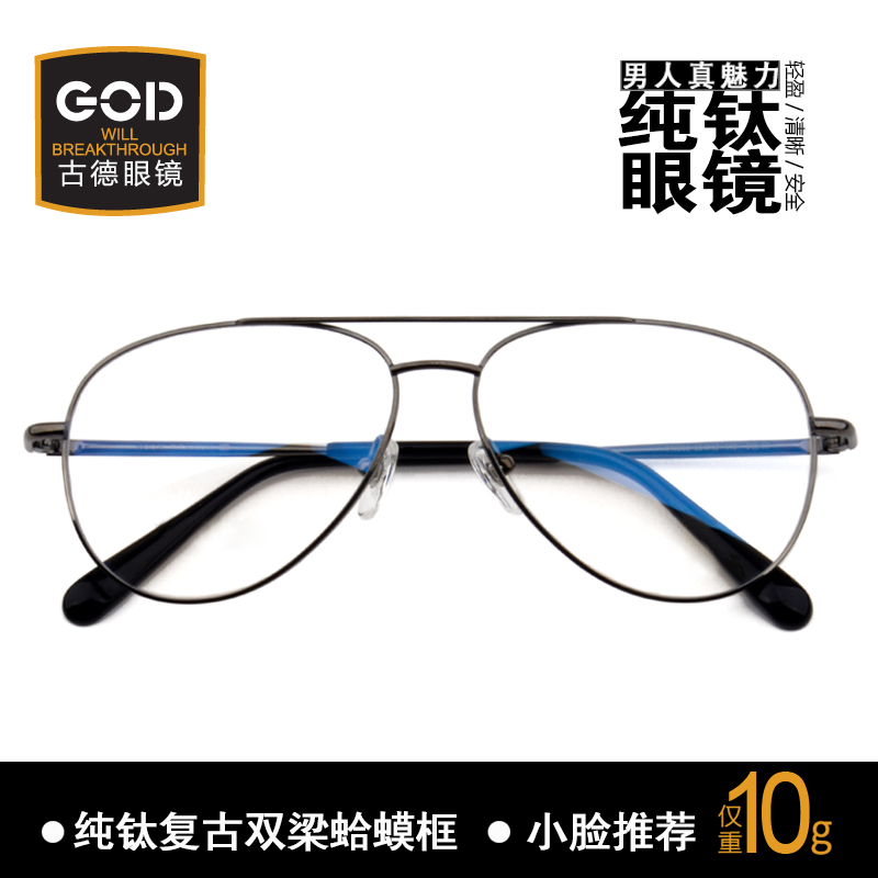 超轻纯钛大框双梁眼镜框男女蛤蟆近视眼镜框架潮配复古大小脸眼镜