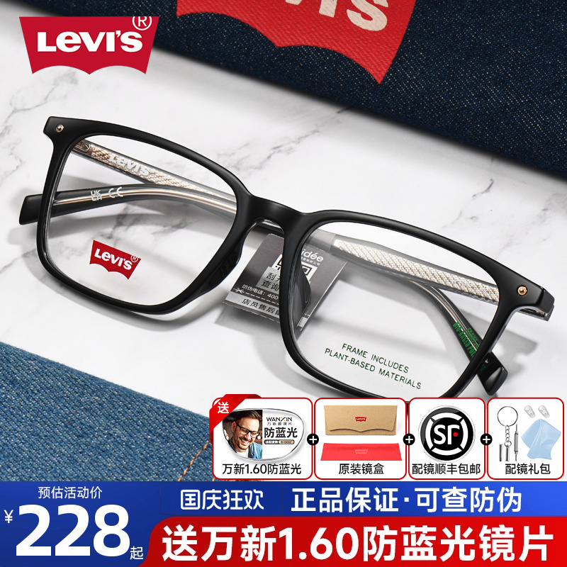 Levis李维斯超轻全框眼镜架潮流出街黑框防蓝光复古配镜男生7153
