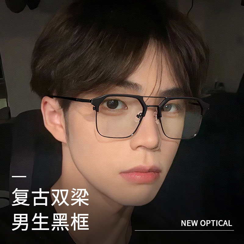 双梁眼镜近视男生可配度数复古眼睛镜框专业线上配定制高颜值黑框