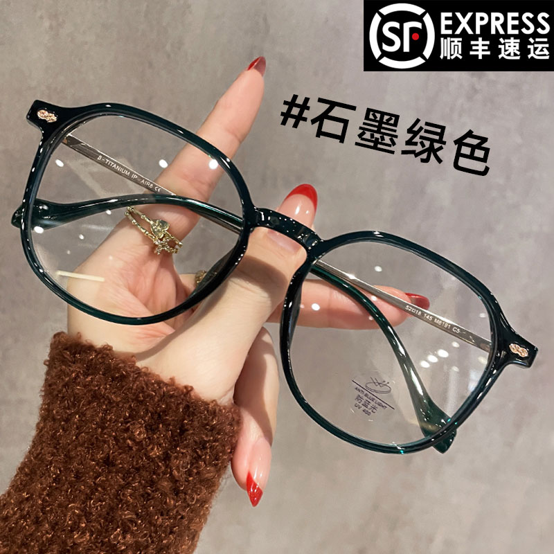 超轻纯钛眼镜近视女可配度数防蓝光大框大圆脸显瘦素颜神器眼睛架