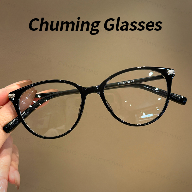 复古黑色猫眼眼镜女近视可配有度数方圆脸素颜黑框眼睛架超轻TR90