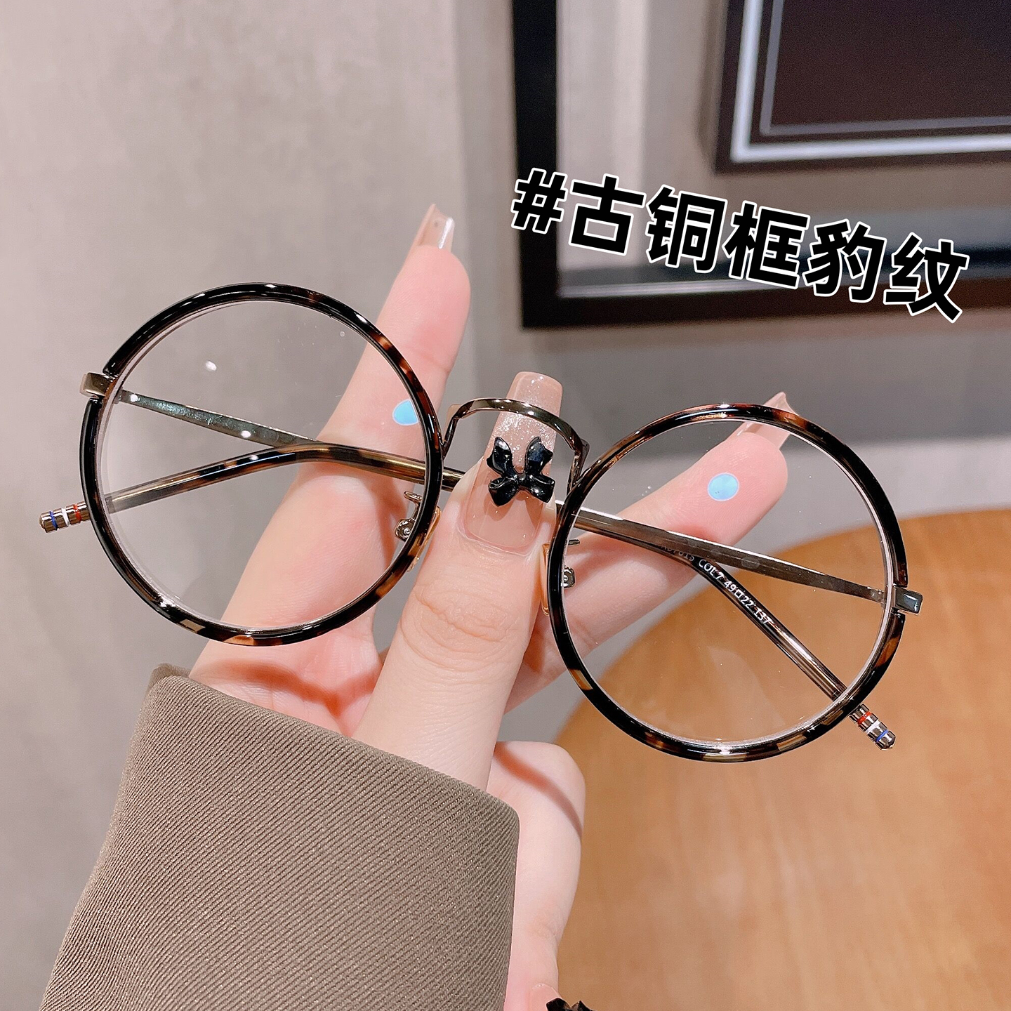 日系原宿豹纹眼镜框架女复古金属韩版小圆框素颜防蓝光近视平光镜