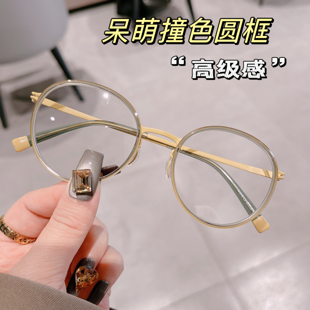超轻纯钛眼镜框女圆框近视眼镜男近视眼睛金丝复古原宿风网红镜架