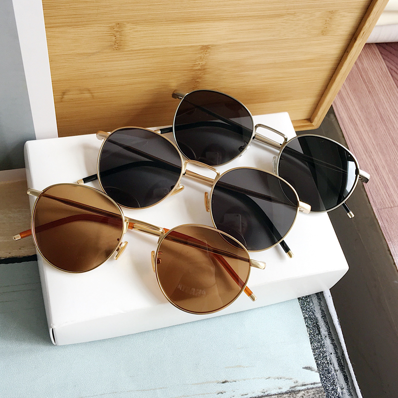 韩国果冻色海洋片太阳镜女原宿复古小圆框金属墨镜男圆脸情侣眼镜