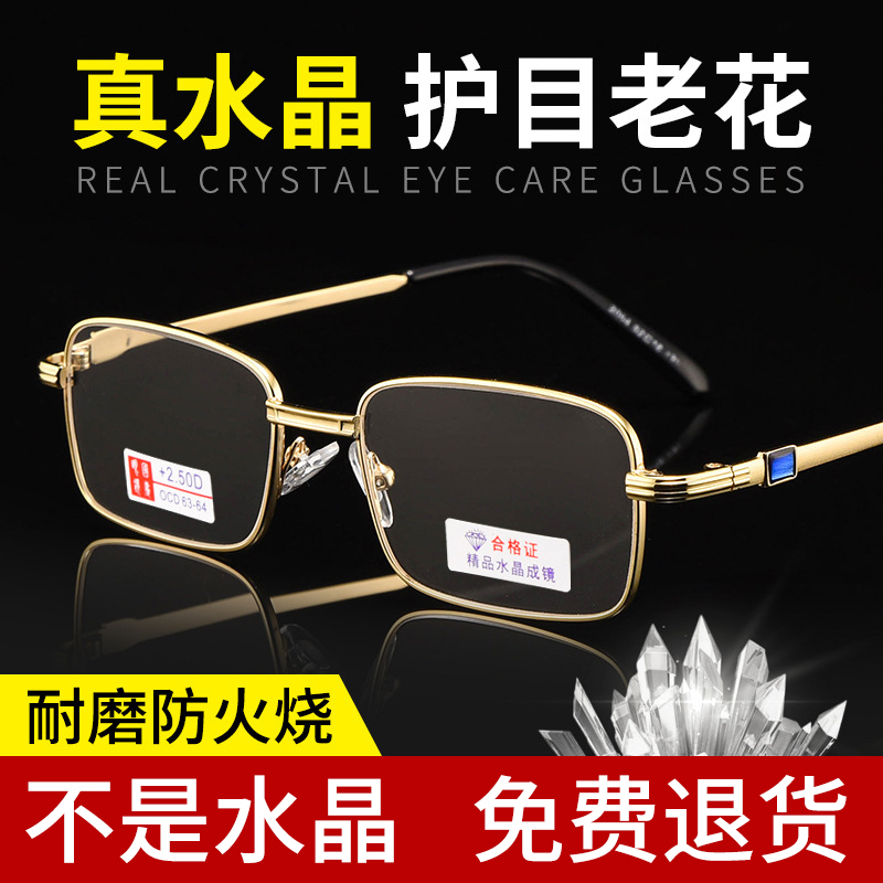 纯水晶老花眼镜男款正品官方旗舰店高清高档真水晶石东海十大品牌