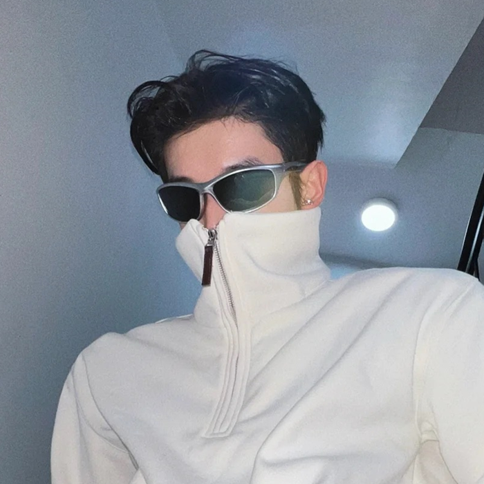 千禧朋克风偏光墨镜银色未来科技感辣妹封帆男女同款嘻哈太阳眼镜