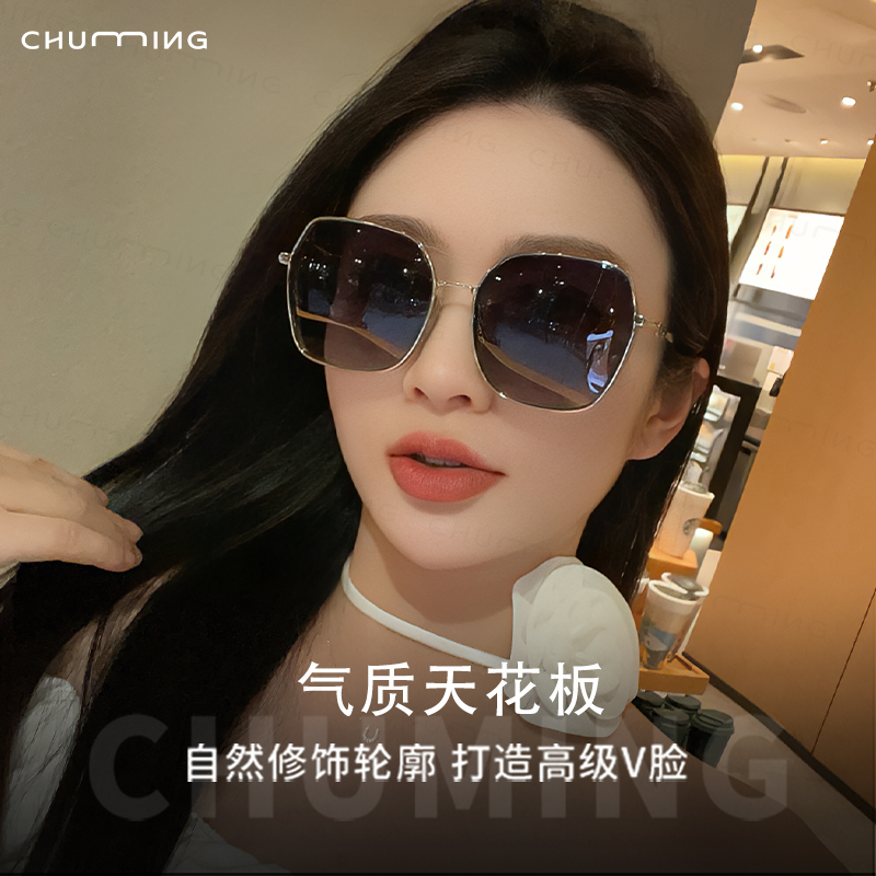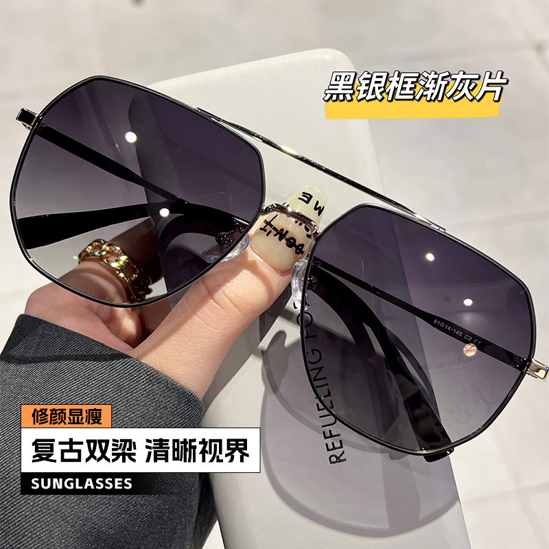 复古银色多边形大框偏光墨镜女款素颜显脸小近视防紫外线太阳眼镜