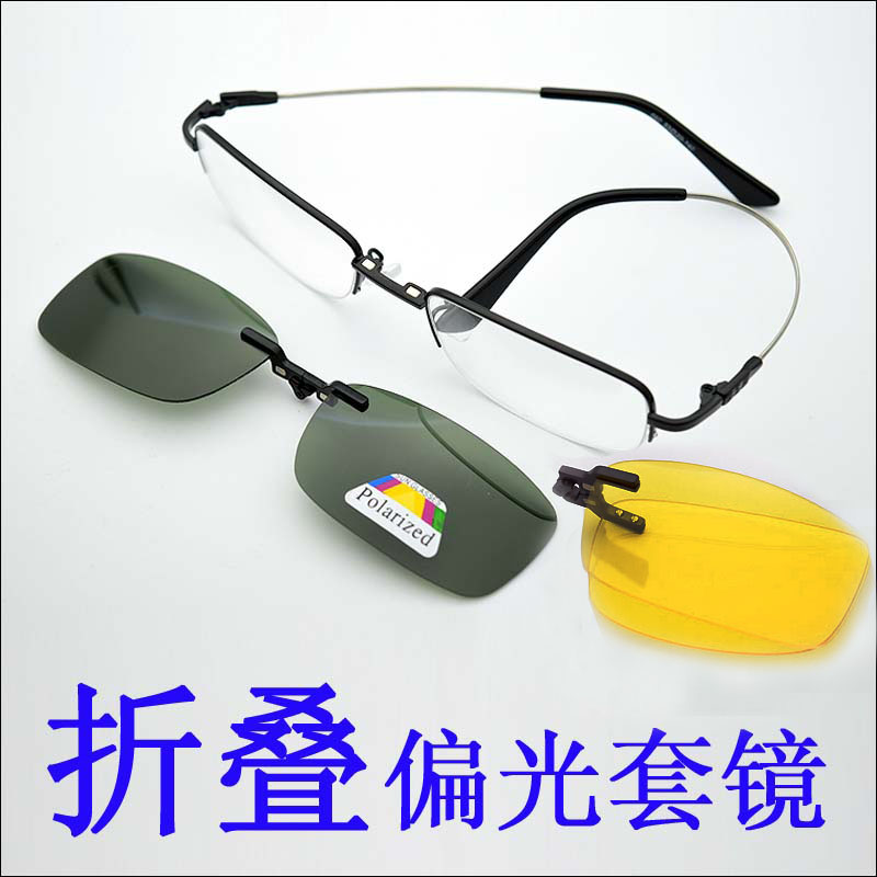 眼镜架带磁铁吸附夹片近视眼镜偏光墨镜套镜男太阳镜银色框夜视镜