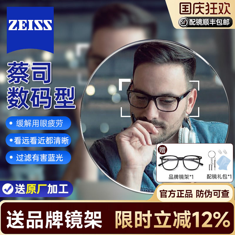 蔡司镜片数码型防蓝光1.60钻立方铂金膜变色配近视眼镜片官方正品