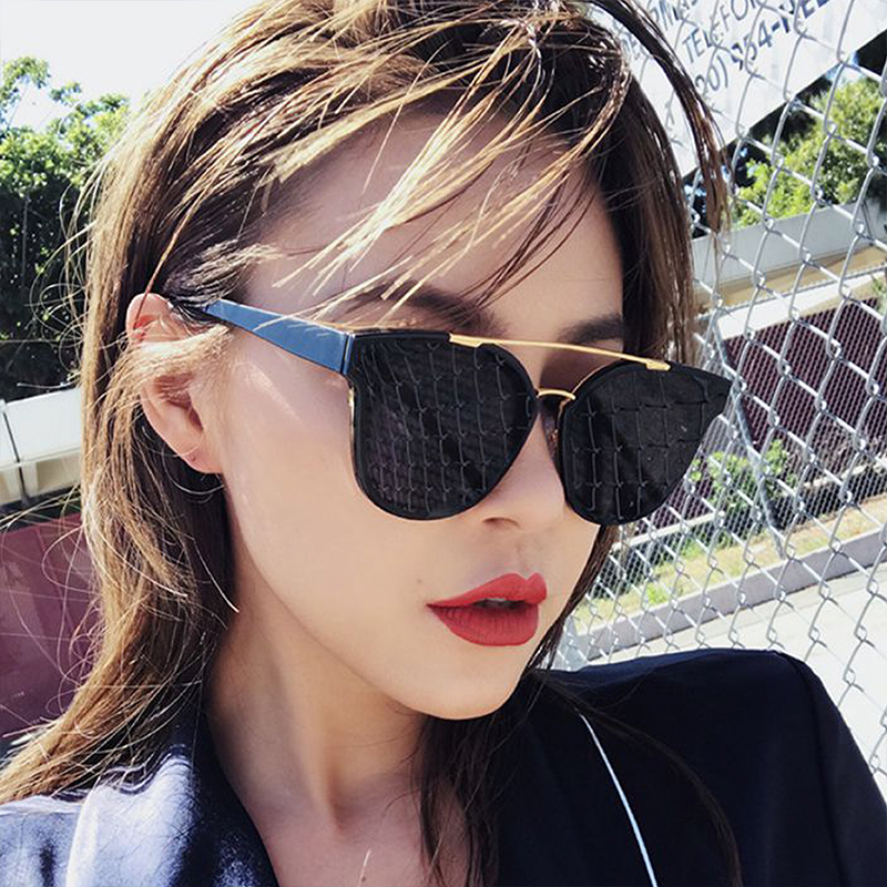 新款欧美个性猫眼太阳眼镜女士防紫外线网红潮流时尚百搭墨镜显瘦