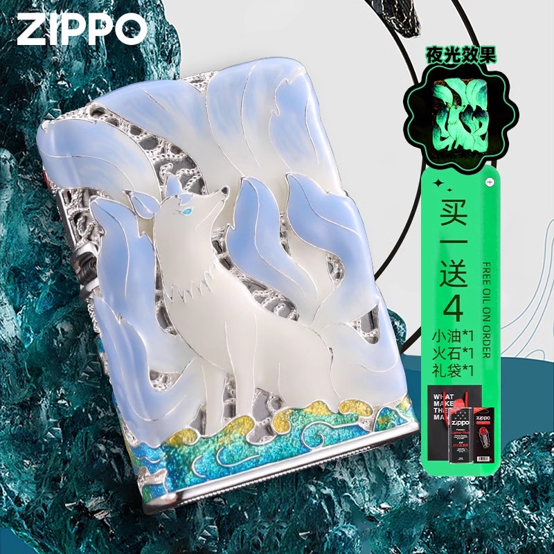 zippo打火机九尾狐夜光珐琅彩外壳正品限量版防风煤油送男友礼物
