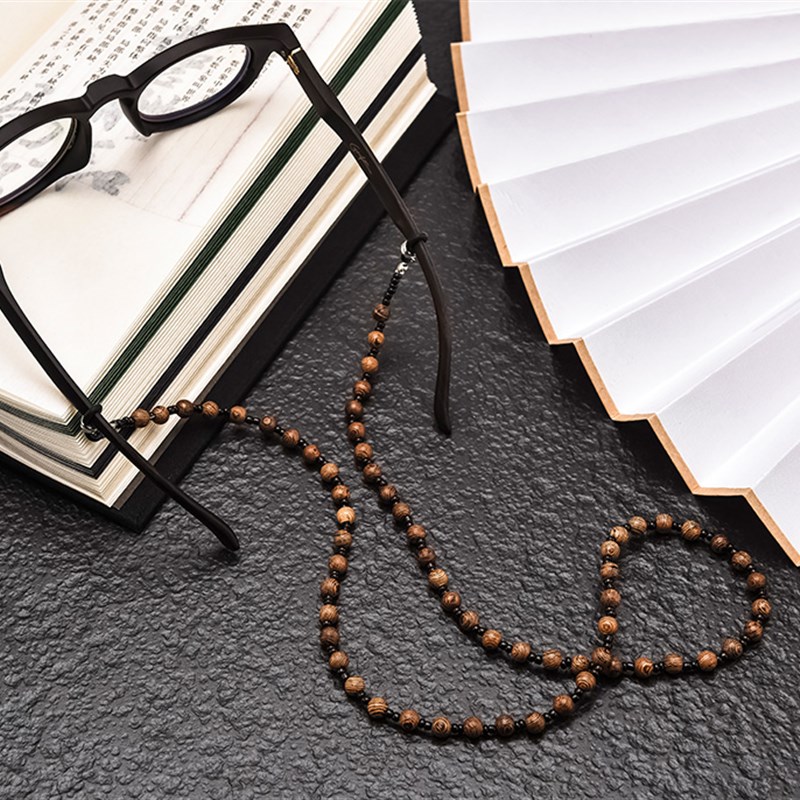 复古中国风木珠眼镜链条女挂脖文艺墨镜链古风老花镜链子米珠挂绳